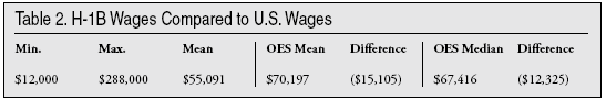 2 John Miano, "The Bottom of the Pay Scale: Wages for H-1B Computer Programmers," Center for Immigration Studies, December 2005, http://www.cis.org/sites/cis.org/files/articles/2005/back1305.html
