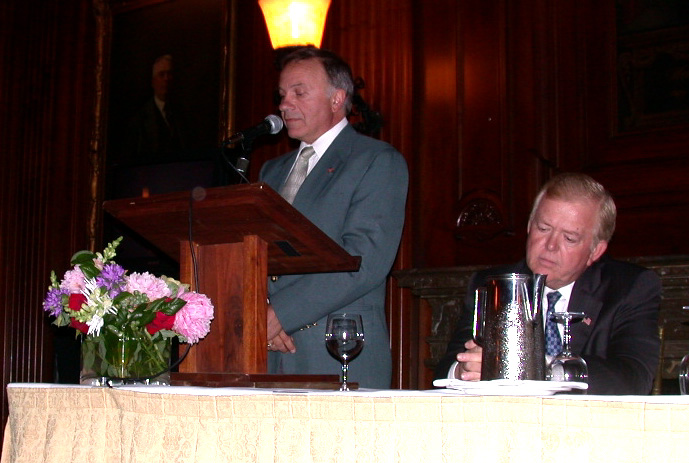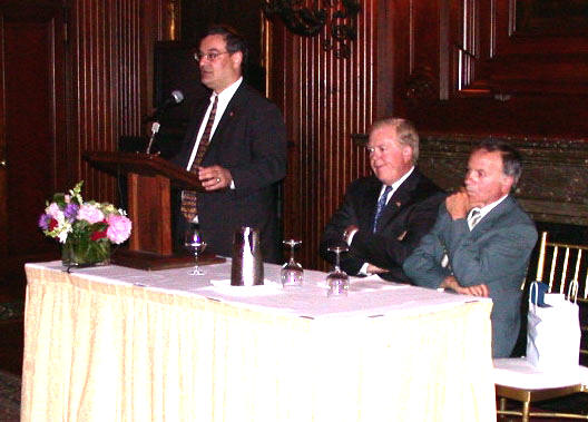 And that’s why we’ve selected Mr. Dobbs’ program and Mr. Dobbs for the award this year. He’s done an outstanding job of this, and rather than my talking about this I’m going to let Congressman Tom Tancredo introduce Mr. Dobbs. Tom is a third-term congressman from Colorado, a Republican. Started out as a teacher, state legislator, now a congressman. Mr. Dobbs joked that Tom should be a little less shy in talking about immigration in the future [laughs]. The reason that’s a joke is that Tom is chairman of the Congressional Immigration Reform Caucus and has made himself a nuisance to the White House in not letting them get away with a lot of the stuff they’ve tried to get away with on immigration. And so I’m going to pass it over to Tom to introduce Mr. Dobbs. Tom?