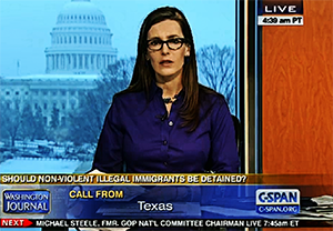 | This morning C-SPAN’s "Washington Journal" included a pair of calls, one right after the other, expressing frustration with immigration-law enforcement at opposite ends of the country. The first came from a man who identified himself as Gil, a Border Patrol agent from Hebronville, Texas. The second came from Sam in Boston, who said he is a small contractor. Here is some of what they said. Read more... |