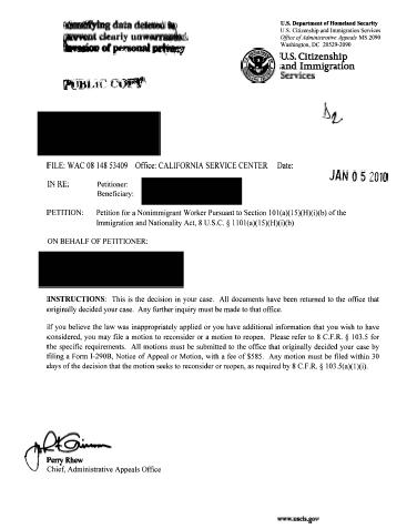 The tiny bits of additional visibility consist of the names of the two employers, the name of the one lawyer, and the last names of the two applicants. Literally tens of thousands of AAO decisions, the non-precedential ones, lack those identities.