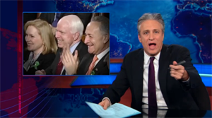 First, Stewart showed McCain at this year's State of the Union address. When President Obama said, "The time has come to pass comprehensive immigration reform", a smiling McCain enthusiastically joined the standing ovation.