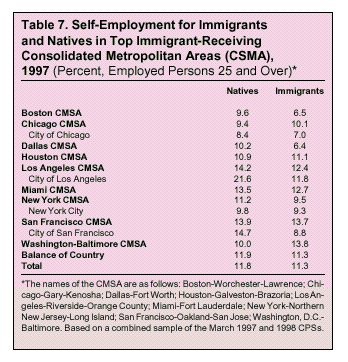 to reporting self-employment rates by CMSA, Table 7 also provides