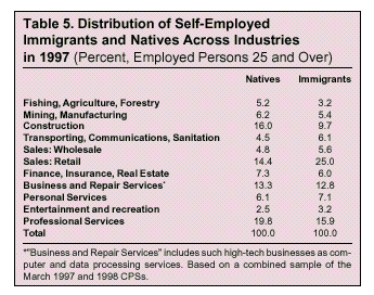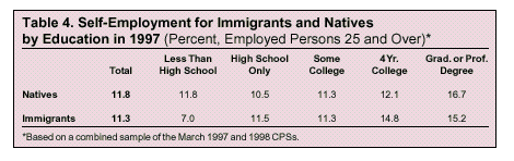 compared to 5.4 percent of immigrant entrepreneurs. The table shows